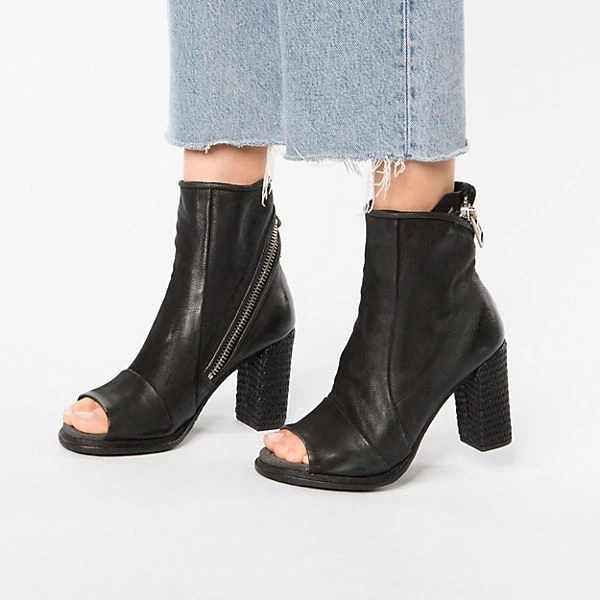 Die stilvoll gestalteten Sommerstiefeletten aus dem Hause A.S.98 ergänzen verschiedene Looks. Für ein angenehmeres Tragegefühl besteht das Fußbett aus Leder. Diese Schuhe schließen per Reißverschluss. Zum modischen Auftritt trägt auch der eindrucksvolle Blockabsatz bei. Das Obermaterial zeichnet sich durch das echte Rindsleder aus.