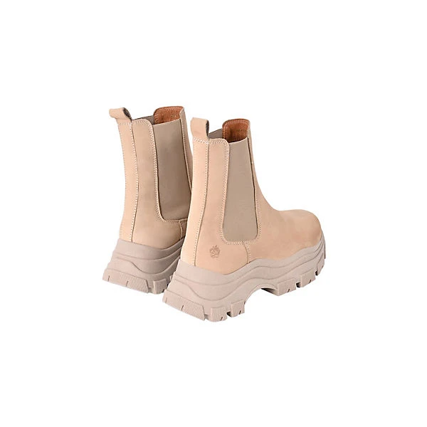 Die wellenförmige hohe Profilsohle betont das coole Design von Apple of Eden bei dem Chelsea Boot ANKA. Ein Optimum an Tragekomfort bietet das hochwertige Leder, elastische Einsätze und eine praktische Ziehlasche an der Ferse.