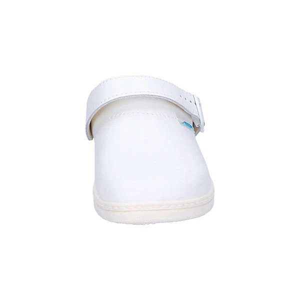 Sicherheitsklasse: EN ISO 20347:2012 OB FO SRC, Zehenschutz: ohne, Durchtrittschutz: ohne, Obermaterial: Glattleder, Farbe: weiß, Innenfutter: Leder, Sohle: rutschhemmende Laufsohle, Weite: 10, Extras: verstell- und klappbarer Fersenriemen, TÜV GS- geprüfte Sicherheit, Lederdecksohle, Sanitized behandelt, beständig gegen Kraftstoffe und tierische Fette