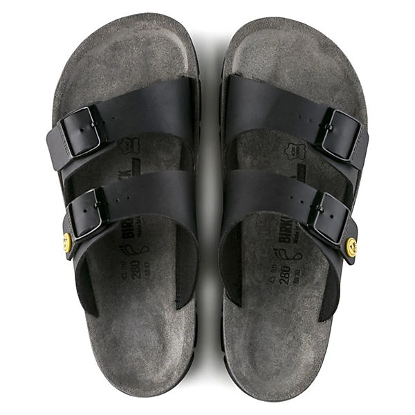 Die Zweiriemensandale Bilbao vereint die anatomisch unterstützende Form des Original BIRKENSTOCK Fußbetts mit einem zusätzlichen Fersenkissen aus Latex und einer luftgepolsterten PU-Sohle. Sie zeichnet sich zudem durch ihre Öl- und Fettbeständigkeit aus und eignet sich daher unter anderem optimal für laufintensive Tätigkeiten.