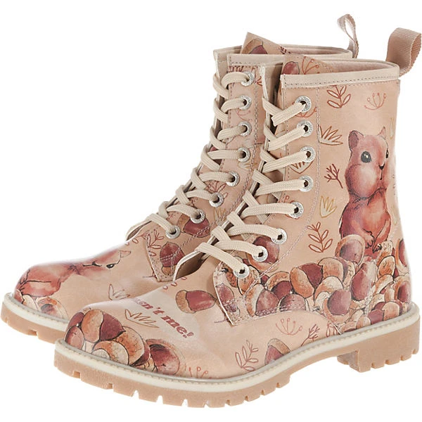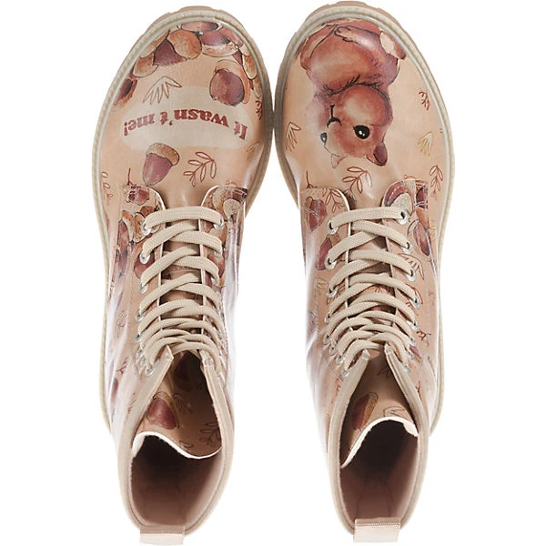 Die handgefertigten It Wasn’t Me Schnürstiefel von Dogo Shoes ziehen mit dem süßen Print, der sich leicht vom rechten zum linken Schuh unterscheidet, viele Blicke auf sich. Das Obermaterial besteht aus Kunstleder.