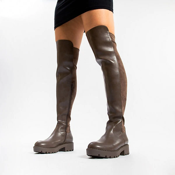 Ein besonderer Blickfang sind diese Overknee-Stiefel der Marke BUFFALO. Dieses Schuhpaar kommt ohne jeglichen Verschluss aus, sodass schnell und einfach hineingeschlüpft werden kann.