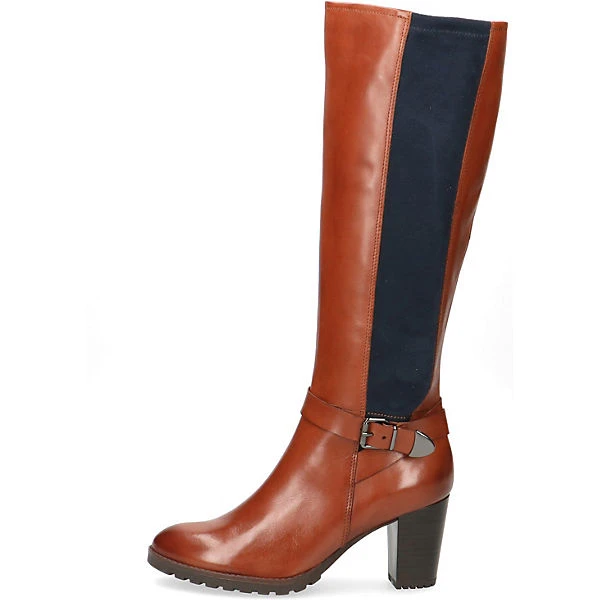 Chicer Damen Hochschaftstiefel der Marke Caprice aus einem feinen hochwertigem Glattleder.Dieses Leder verleiht einen edlen Look und ist gut zu pflegen. Auch die textile Innenverarbeitung überzeugt durch ihre angenehm weiche Beschaffenheit. Die aus Textil bestehende Decksohle bettet den Fuß angenehm. Geschnitten ist die Form für normal breite Füße (Weite F). Der Trichterabsatz hat eine Höhe von cirka 5 cm ,für gute Bodenhaftung sorgt die abriebfeste und griffige Gummisohle. An der Innenseite verfügt der Schuh über einen Reißverschluss, sodass ein schnelles An- und Ausziehen gewährleistet ist. Die medium Schaftweite passt sehr gut für alle normalweiten Waden. Durch die runde Schuhspitze wirkt der Schuh dezent am Fuß und bietet genügend Platz für die Fußzehen. Die Schuhgröße fällt regulär aus.