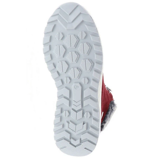Ein schlichter, aber dennoch moderner und toll aussehender Winterstiefel, der durch die kontrastreiche Schnürung, die silbernen Ösen und das graue Kunstfell am Schaftrand punktet. Durch die Schnürung kann die Weite des Schuhes ideal angepasst werden. Besonders angenehm ist das weiche Innenfutter, welches an kühlen Tagen angenehm schützt. Zusätzlich hält eine J-Tex Membrane die Füße auch an kalten und feuchten Tagen wohlig warm. Für guten und sicheren Stand sorgt die Profil-Laufsohle aus Gummi.