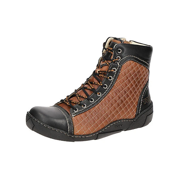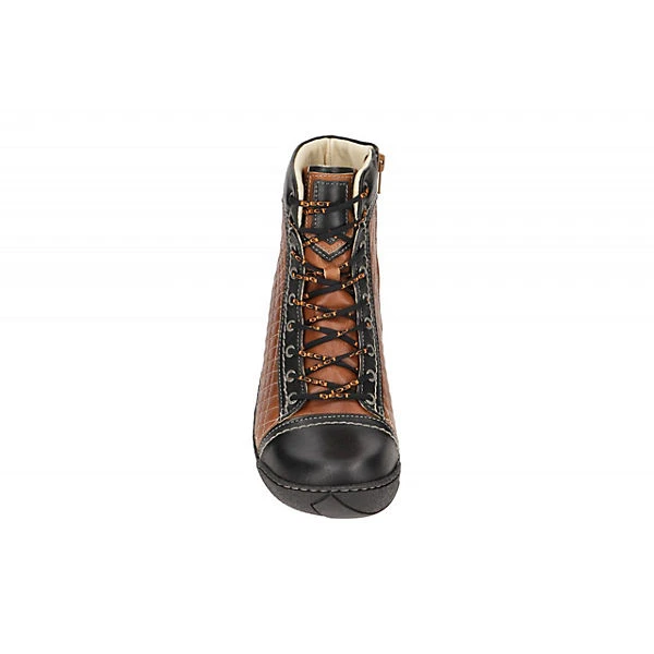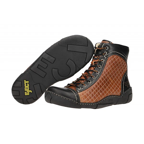 Hersteller: Eject Hersteller Art-Nr.: 20237.001 Modellname: ICE Machart: Damen Stiefeletten – sportliche Stiefelette Farbe: schwarz + braun (black / camel) Obermaterial: Echtleder – Glattleder Innenfutter: Echtleder – naturgegerbt Innensohle: Echtleder – naturgegerbt Wechselfußbett: Ja – herausnehmbare Innensohle Laufsohle: Gummisohle, mit „Eject“ Buchstaben Profil Verschluss: Schnürung und Reißverschluss Absatzart: flach – kein Absatz Schafthöhe: Knöchelhoch, ca. 14cm Schuhform: rund Größenhinweis: fällt normal aus Weitenangabe: G – normal Weite