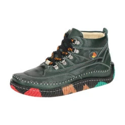 Hersteller: Eject Hersteller Art-Nr.: 6756/1.002 Modellname: NEWJECT Machart: Damenstiefel – Winterstiefel, Schnürstiefel Farbe: dunkelgrün (green) Obermaterial: Echtleder – Glattleder (Verzierung durch Handnähte) Innenfutter: Warmfutter – 100% Wolle, 100% Schurwolle in beige Innensohle: Echtleder – Fußbett Wechselfußbett: Ja – herausnehmbare Innensohle Laufsohle: Gummisohle Verschluss: 5fach Schnürung Absatzart: flach – kein Absatz Schafthöhe: Knöchelhoch, ca. 12cm Schuhform: rund Größenhinweis: fällt normal aus Weitenangabe: G – normal Weite