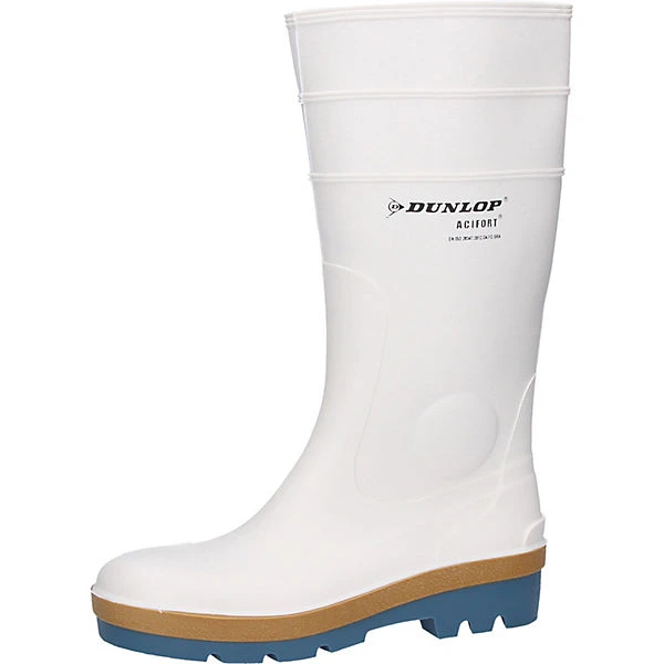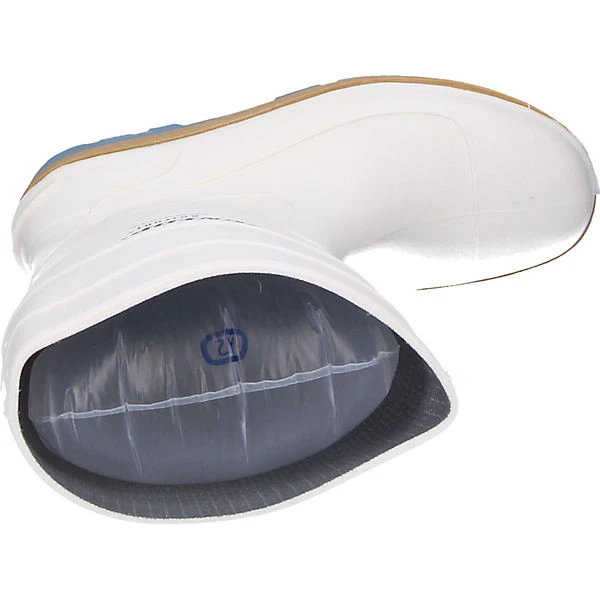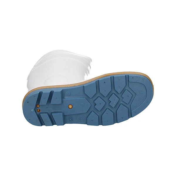Sicherheitsklasse: EN ISO 20347:2012 4 FO CI SRC, Zehenschutz: ohne, Durchtrittschutz: ohne, Obermaterial: PVC, Farbe: weiß/blau, Innenfutter: antibakterielles Gewebe, Sohle: PVC, bedingt beständig gegen Minerale, tierische und pflanzliche Öle und Fette, Desinfektionsmittel, Gülle, diverse Chemikalien, antistatisch