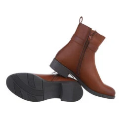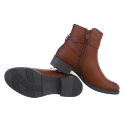 Flache Stiefeletten Reißverschluss, Blockabsatz, Used Look, Dekoschnallen