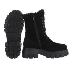Schnürstiefeletten Lochschnürung, Blockabsatz, Dekofell – Schwarz