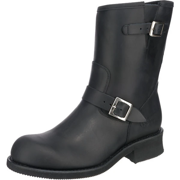 Die Kochmann Boots Engineer Stiefeletten sind aus geschmeidigem Leder gearbeitet und zeigen sich mit Schnallenverzierungen am Schaft. Die Decksohle besteht ebenfalls aus Leder und ist leicht gepolstert.