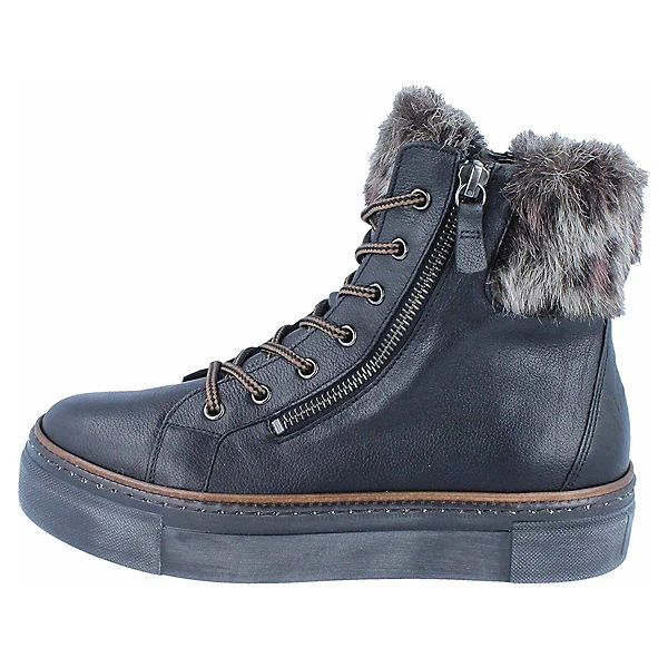 Schöne Damen Stiefeletten von Gabor aus einem feinen hochwertigem Glattleder. Innen ist der Schuh mit einem hochwertigem Kunstfell ausgestattet. Der Schuh hat eine normale Weite. 4 cm. Die Laufsohle ist aus Gummi. Der Artikel verfügt über einen Schnürverschluss. Die Schaftweite fällt normal aus (M-Schaft). Die Schuhgröße fällt regulär aus.