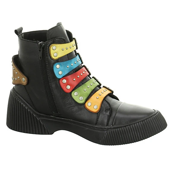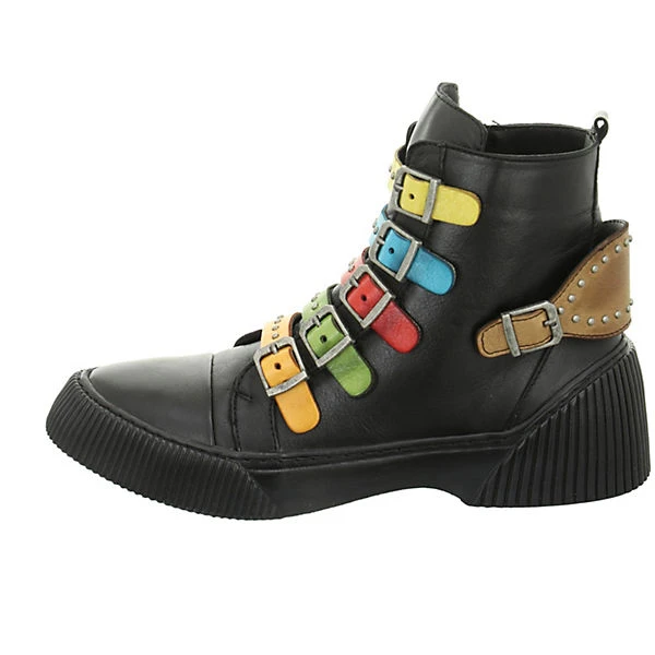 Ausgefallene Stiefelette in komfortabler Ausfhrung von Gemini softes Nappaleder in schwarz mit farbigen Schnallen Reiverschluss innen Textilfutter