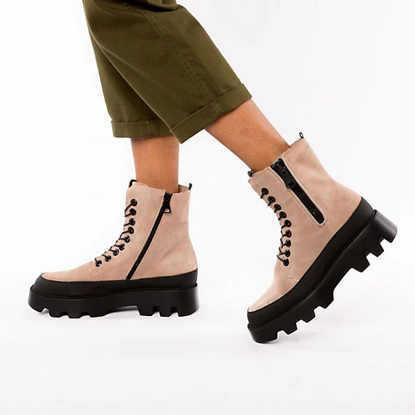 Unterstreichen viele verschiedene Outfits: Die stilvoll gestalteten Schnürstiefeletten aus dem Hause JOLANA & FENENA. Für ein angenehmeres Trageerlebnis besteht die Decksohle aus echtem Leder. Feinstes Rindsleder zeichnet dieses Paar aus. Der niedrige Blockabsatz bietet einen ansprechenden Look. Eine individuelle Anpassung wird durch den Schnürverschluss gewährleistet, der zusätzlich durch einen praktischen Reißverschluss ergänzt wird.