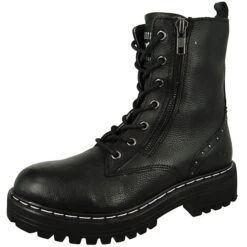Die Stiefelette 2895504 aus dem Hause Mustang im modischen Style. Das Obermaterial aus pflegeleichtem echten Leder sowie das Innenmaterial aus Textil sorgen für perfekten und komfortablen Tragekomfort zu jeder Jahres und Tageszeit. Der Schnürverschluss sorgt für den leichten Einstieg und setzt diese Stiefelette auch noch stilvoll in Szene. Die Stiefeletten haben einen Blockabsatz mit einer Höhe von 3 cm und eine Laufsohle aus Gummi. Die Mustang sind absolut toll mit allem kombinierbar.