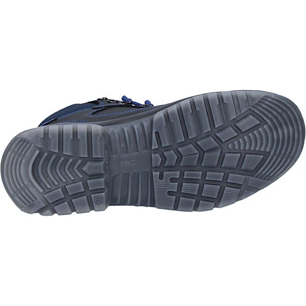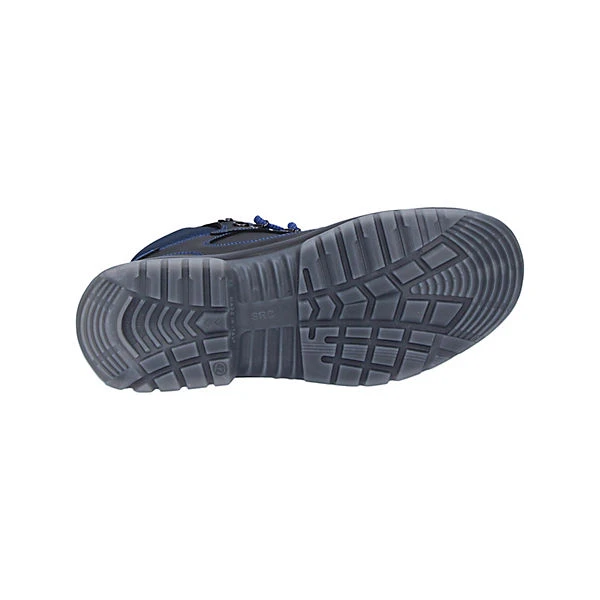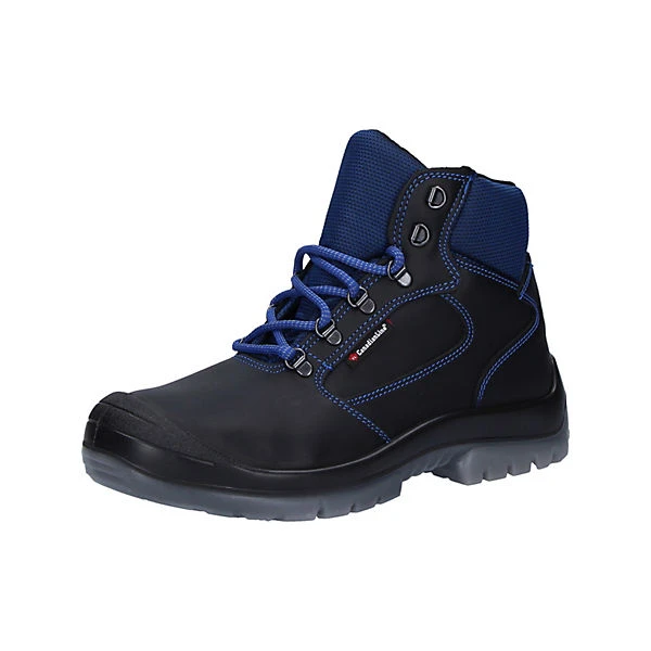Sicherheitsklasse: EN ISO 20345:2011 S3 SRC, Zehenschutz: Stahlkappe, Durchtrittschutz: Stahlzwischensohle, Obermaterial: Leder / Nylon, Farbe: schwarz / blau, Innenfutter: Textil, Sohle: PU / PU transparent, bedingt öl-, benzin- und säurebeständig, antistatisch, Shockabsorber im Absatz, Weite: 11