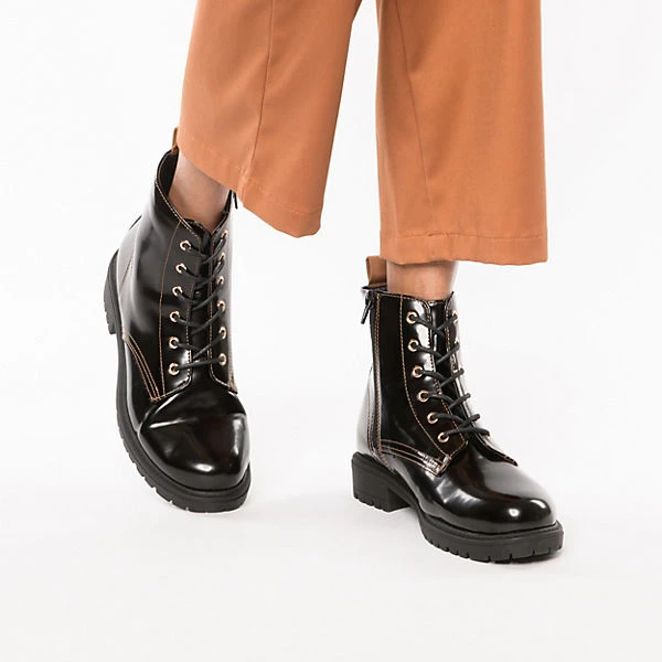 Diese stilsicheren Schnürstiefeletten von Lynfield vervollständigen Ihre Garderobe. Zusätzlich zum Schnürverschluss ist das Modell mit einem Reißverschluss ausgestattet. Der Blockabsatz in komfortabler Höhe sorgt für ein angenehmes Tragegefühl und einen modischen Touch. Ein Pluspunkt ist auch das anpassungsfähige Polyester-Futter. Das überzeugend gestaltete Synthetik-Obermaterial unterstützt den Look dieses Schuhs.