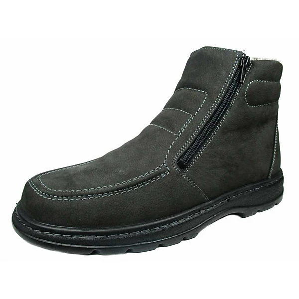 Herren Stiefel von Solidus aus einem feinen hochwertigem Nubukleder. Innen ist der Schuh mit einem hochwertigen echten Lammfell ausgestattet. Der Schuh hat eine normale Weite. Der Absatz ist durchgehend flach. Die Laufsohle ist aus Krepp. Der praktische Reißverschluss ist ideal zum einfachen an- und ausziehen. Die Schaftweite fällt normal aus (M-Schaft). Die Schuhgröße fällt regulär aus.