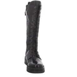 MJUS Damen Stiefel Schuhe Doble Stiefel Elegant Freizeit Glattleder Uni Schnürstiefel – Schwarz