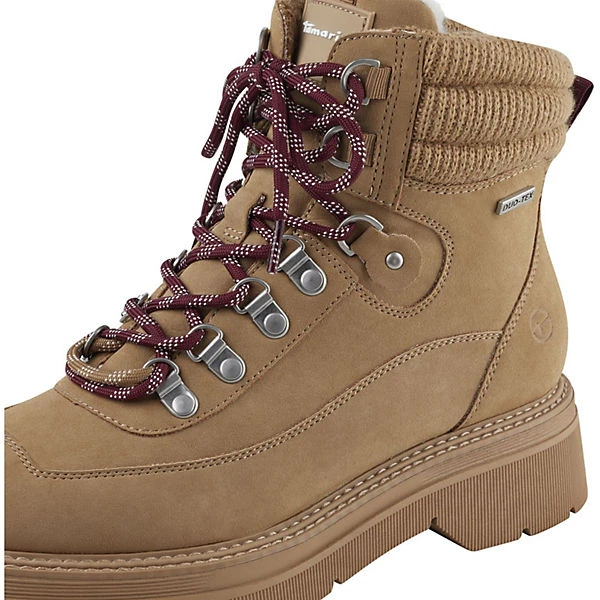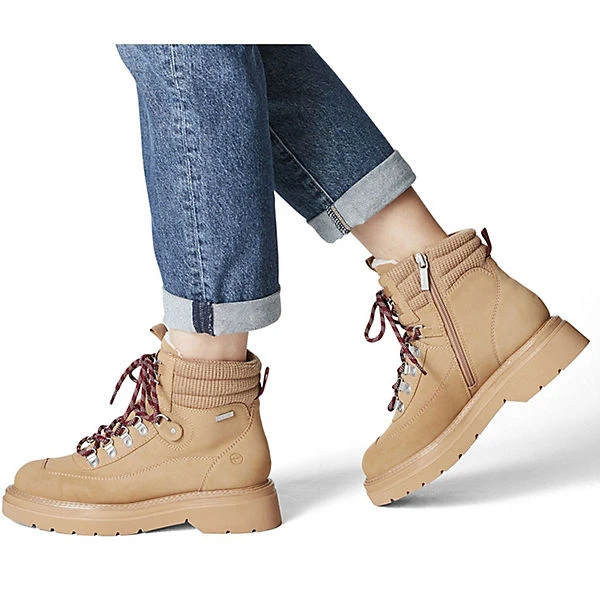 Dieser warmgefütterte Schnürboot von Der Marke Tamaris ist aus Synthetik. Der 50 mm hohe Blockabsatz kombiniert mit der runden Schuhspitze rundet jedes Outfit ab. Für einen trockenen Fuß auch bei Regen sorgt Die Duo-Tex Technologie am Schuh. Die TOUCH-IT-Technologie sorgt für optimalen Tragekomfort: Weiches Fußbett passt sich der natürlichen Fußform an.