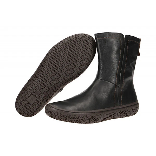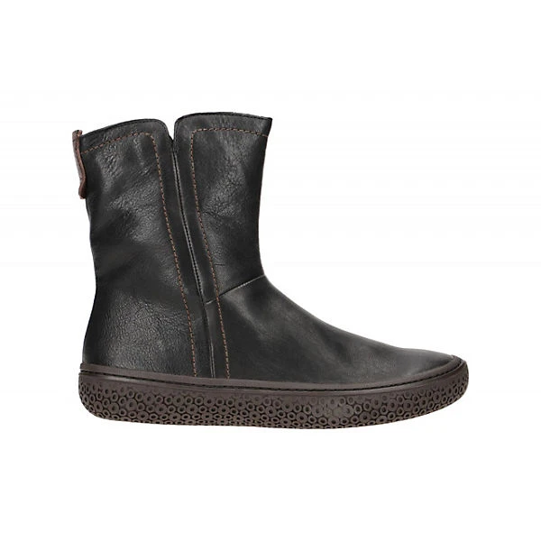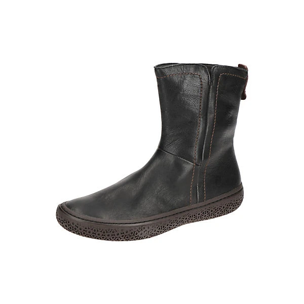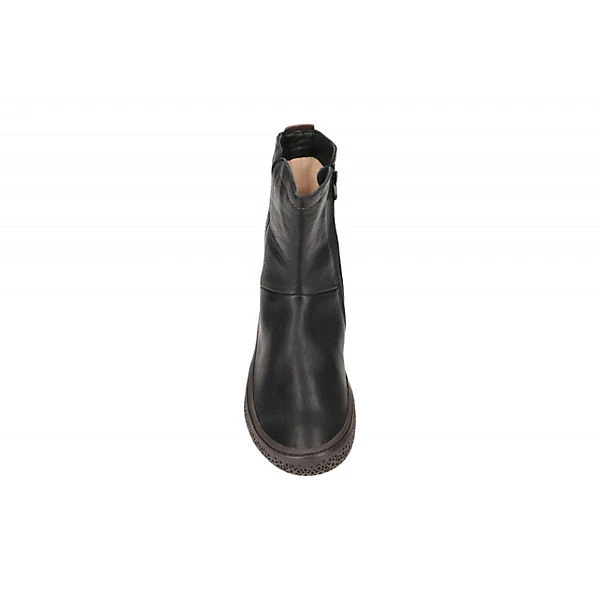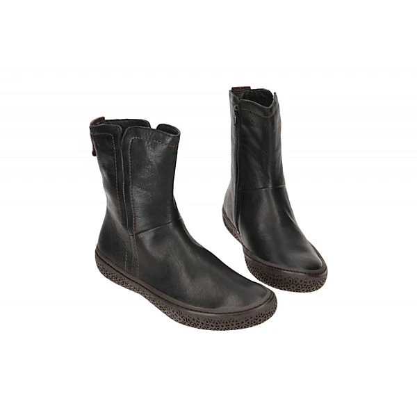 Hersteller: Think Hersteller Art-Nr.: 3-000458-0000 Modellname: TJUB Machart: Damen Stiefeletten – sportliche Stiefelette Farbe: schwarz + braun + Sohle in dunkelbraun (sz / kombi) Obermaterial: Echtleder – Glattleder (Agnello Nevada / Bull) Innenfutter: Echtleder – dünnes Leder Kaltfutter Innensohle: Echtleder Komfort Fußbett Wechselfußbett: Ja – herausnehmbare Innensohle Laufsohle: Gummisohle Verschluss: Reißverschluß Absatzart: flach – kein Absatz Schuhform: rund Größenhinweis: fällt normal aus Weitenangabe: G – normal Weite
