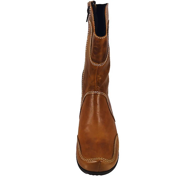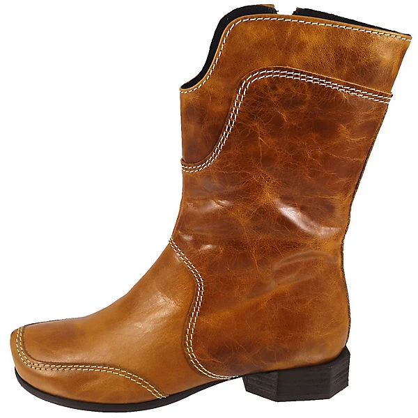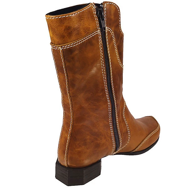 Dieser bequeme Halbstiefel für die kältere Jahreszeit aus echtem Leder und textilem Warmfutter wird durch seine Details abwechslungsreich. Ein achteckiger flacher Lederabsatz wurde mit einer Wintersohle kombiniert. Der innenliegende Reißverschluß ermöglicht einen einfachen Einstieg. Ein doppeltes Stitching hebt die Schnittform hervor. Beim Tragen über der Hose wird durch die vordere Abrundung eine interessante Gestaltung betont.