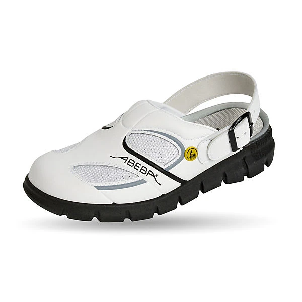 Art. 48029 Abeba ESD-Clog (37345)antistatischer Damen u. Herren Clog nach ESD von Abeba, Obermaterial aus hochwertigem Micro-Material = atmungsaktiv und bis 30° waschbar, atmungsaktive Textileinsätze für angenehmes Fußklima, Fersenriemen mit Schnallenverschluss verstellbar, auswechselbare acc-air-clima-Comfortsohle, robuste und flexible Laufsohle auch ideal für Küchen geeignet