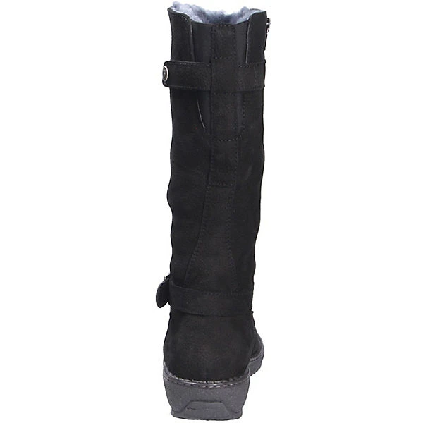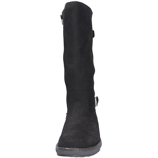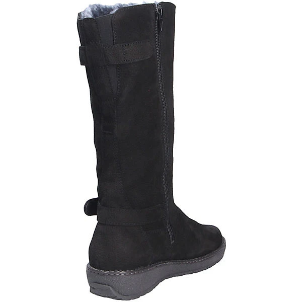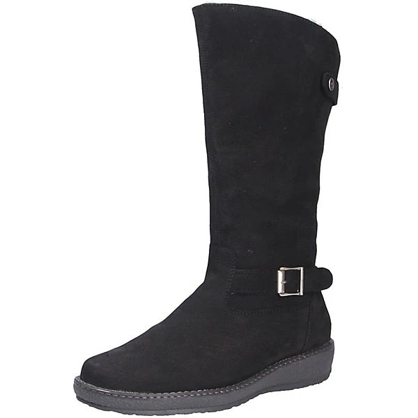 Damenstiefel mit Comfortweite der Marke Waldläufer aus einem weichen Veloursleder.Diese Leder hat eine samtartige Oberfläche, ist sehr weiches und atmungsaktiv. Ausgestattet ist der Schuh mit einem hochwertigen Lammfell. Das Fußbett ist aus Textil und nicht auswechselbar. Auf diesen Schuh freuen sich besonders etwas breitere Füße:Die Weite H bietet hier ausreichend Platz. Der Keilabsatz hat eine Höhe von cirka 2 cm ,als Sohlenmaterial kommt ein griffiges und abriebarmes Gummi zum Einsatz. An der Innenseite verfügt der Schuh über einen Reißverschluss, sodass ein schnelles An- und Ausziehen gewährleistet ist. Aufgrund der weiten Schaftweite ist dieser Stiefel ideal für sehr volle Waden geeignet. Durch die runde Schuhspitze wirkt der Schuh dezent am Fuß und bietet genügend Platz für die Fußzehen. Die Schuhgröße fällt regulär aus.