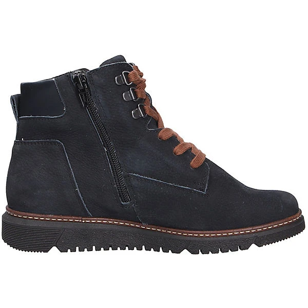 Damenstiefel aus dem Hause Waldläufer aus einem feinen hochwertigem Nubukleder.Die angeraute Oberfläche ist besonders weich und gibt dem Leder ein angenehmes Gefühl. Für einen angenehmen Tragecomfort ist das weiche und wärmende Futter zuständig. Durch die auswechselbare Decksohle ist es möglich, eigene Einlagen zu verwenden. Der Schnitt ist für breitere Füße (Weite H) geeignet. Der Keilabsatz hat eine Höhe von cirka 1 cm ,für gute Bodenhaftung sorgt die abriebfeste und griffige Gummisohle. Eine praktische Schnürung vollendet den klassischen Look und erleichtert Ihnen den Einstieg. Aufgrund der weiten Schaftweite ist dieser Stiefel ideal für sehr volle Waden geeignet. Durch die runde Schuhspitze wirkt der Schuh dezent am Fuß und bietet genügend Platz für die Fußzehen. Die Schuhgröße fällt regulär aus.